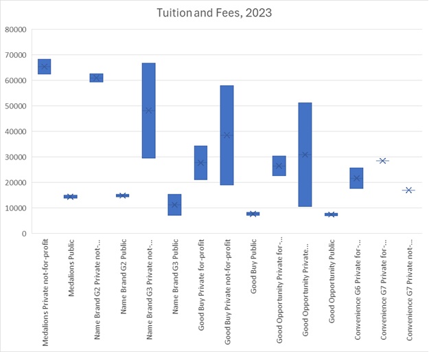 My curiosity arose from the CST. It led me to seek a deeper understanding of where California’s 4-year institutions truly sit competitively. After the approach, outlined in the broader “landscape” literature (often linked with Zemsky’s work), I used IPEDS data to map out market positions based on: